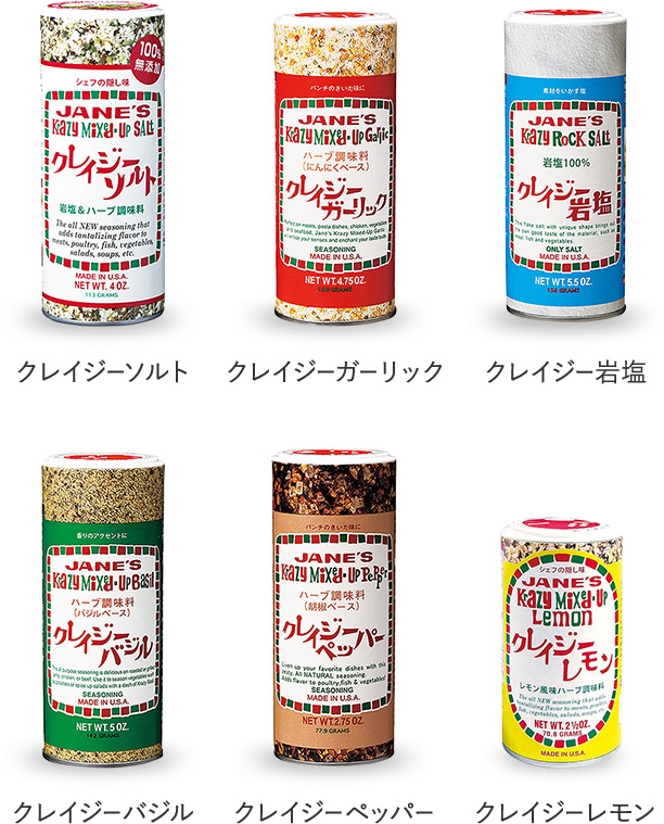 1960年代のアメリカ・フィラデルフィア、当時60才のジェーンおばさんのキッチンで誕生しました。試行錯誤しながら岩塩にハーブをブレンドした調味料をクリスマスプレゼントとして近所の人に贈ったところ、皆が「もっと欲しい!」と夢中になったのです。それがクレイジーソルトの始まりです。