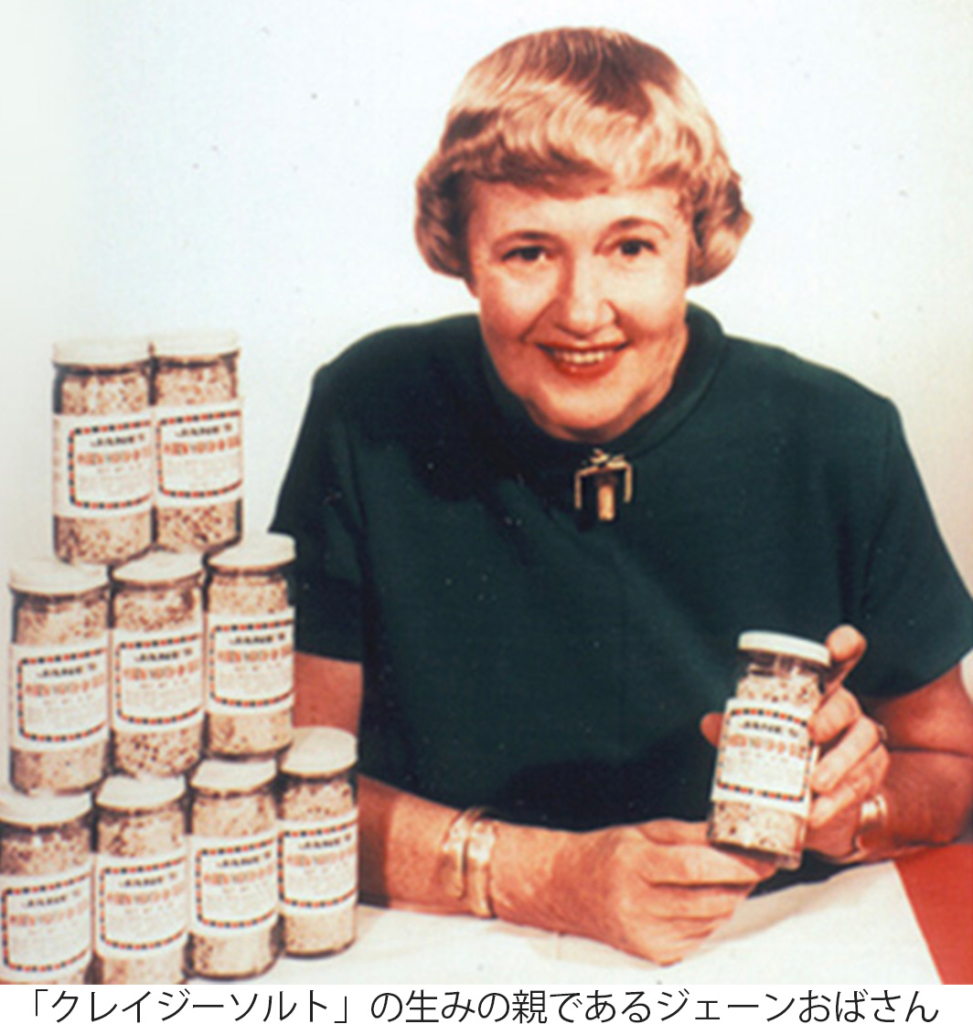 「クレイジーソルト」は、1960年代のアメリカで生まれましたが、もともとは「クリスマスプレゼント」でした。当時60歳のジェーンおばさんが、彼女だけが知っていたとてもおいしい岩塩を削り、それにハーブを加えて手作り調味料を楽しんでいたことが始まりです。